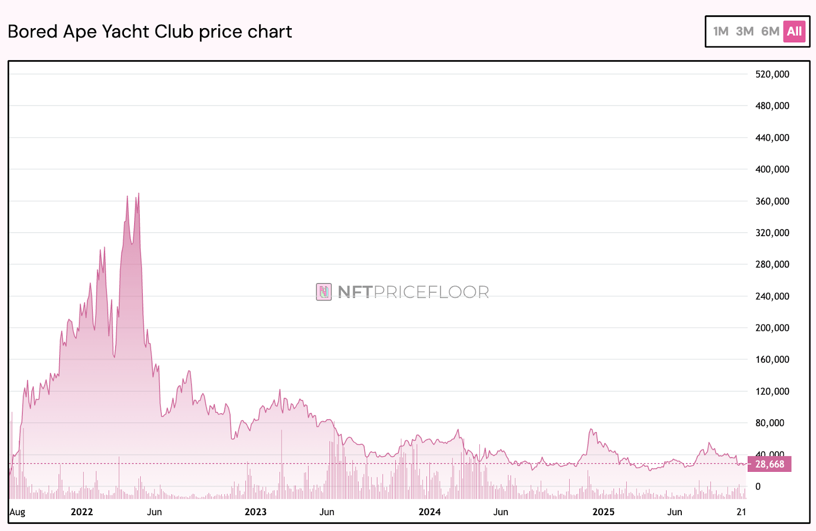 Despite all this news, the floor price for a BAYC NFT remains down in the past month — and a far cry from their all-time high of over $350,000 apiece over three years ago.