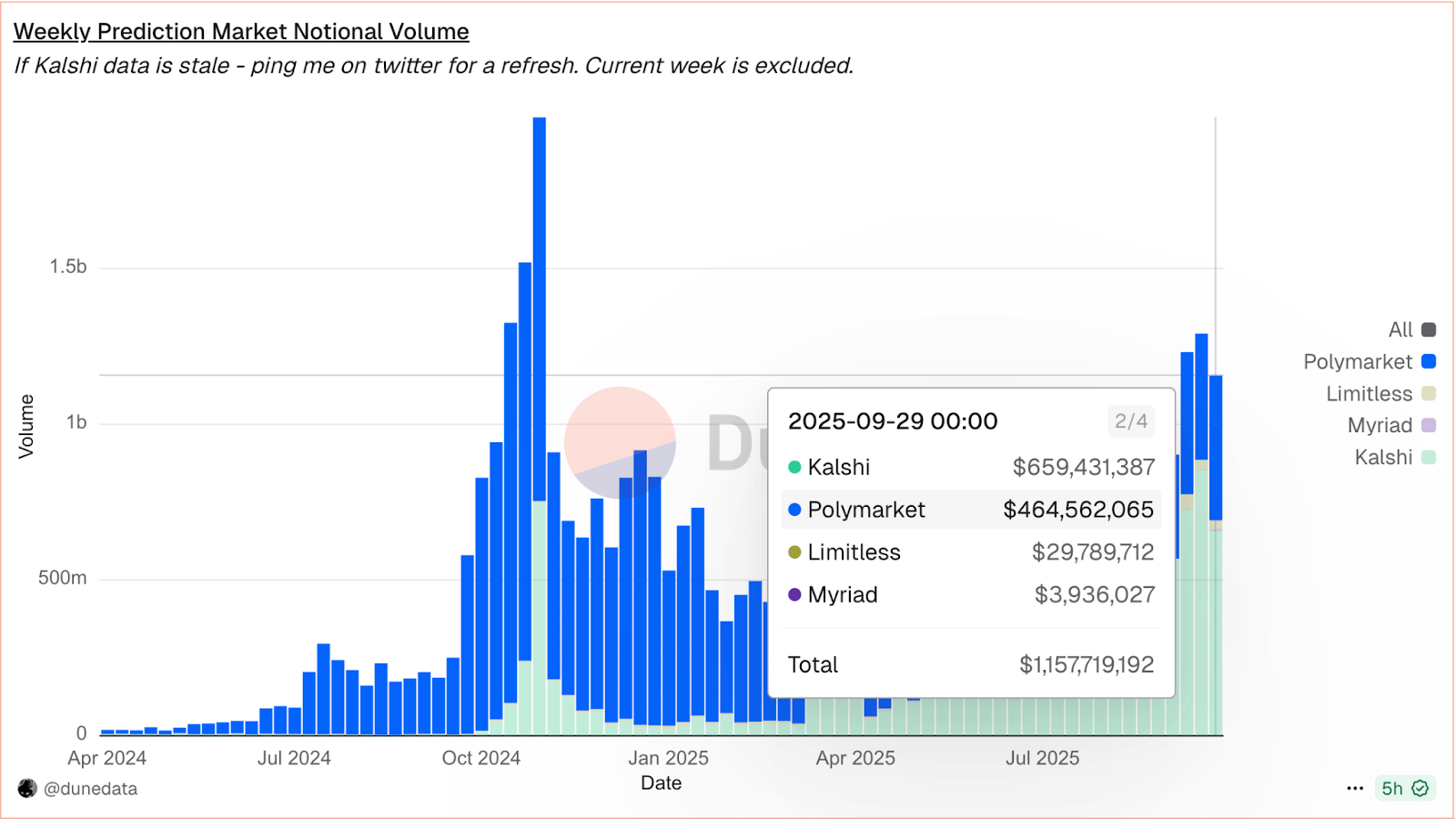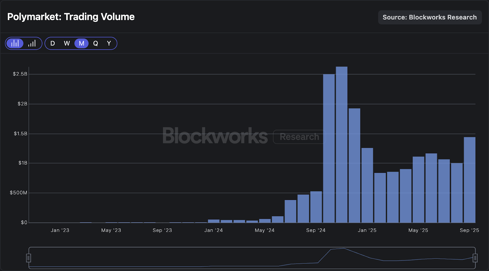 Polymarket, which is built on Polygon, also continues to see substantial volume, with over $1.3 billion in volume traded in September alone.