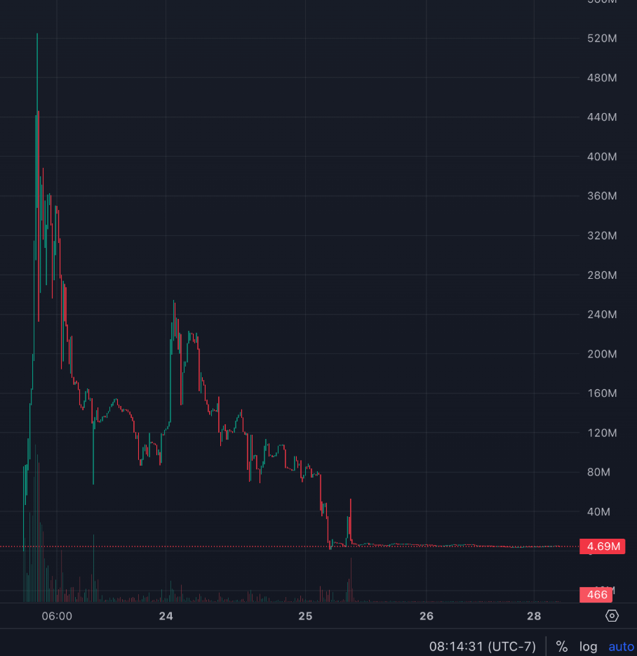 It’s held a market cap of less than $10 million since Thursday last week. The token has less than 1,000 holders.